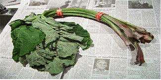 I always loved burdock but never had the greens until this spring (2010). Now I’m hooked. Unfortunately the season can be very short. According to the vendor at the Union Square Market, they grow very tall very fast, and then they might become too tough to eat.