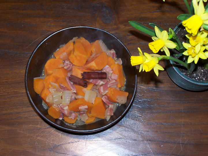a hardy side dish for any kind of meat or fish entrée. Slab bacon is better than packaged bacon